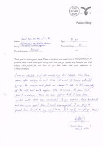 “I was an athlete, and still maintaining this lifestyle. Over these years, after exerting too much stress and much of leaving untreated injuries, the muscles and joints are starting to take its toll, especially at the calf and ankle region. After 10 sessions, the pains had gone to a minimum. There are even injuries that I never knew existed until tests were conducted. To my surprise, these treatments had done more good than I could ever imagined. I am going to spread this brand to my neighbours. It’s really something, NICE!” – Faizal