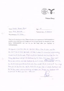 “Got injured on 2nd June 2016 coz I fell down stairs. Went to clinic and the doc said it was an ankle sprain. Will take 2 weeks to recover but unfortunately it wasn’t ok till the 3rd week. Google any physio treatment and found Yap Chan Kor. Making appointment and got the treatment by Mr. Azlan. He is super duper best! Gave me some advice and best treatment for me to recover. After 10 sessions with him, now I have recovered from pain and can walk like a model! So me would like to say a huge thank you to Yap Chan Kor esp Mr. Azlan for all your help in the physio treatment over the last few weeks with my recovery and support me through my treatment. Will recommend to others, for sure. THANK YOU”