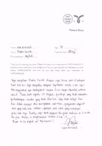 “Saya mengalami Plantar Fasciitis dimana saya berasa sakit di bahagian tumit kaki kiri. Saya mengetahui mengenai Yap Chan Kor melalui suami saya, dan menyarankan agar mendapatkan rawatan di sini sebagai alternatif suntikan steroid. Terima kasih kepada Cik Najihah, fisioterapi yang telah memantau perkembangan rawatan yang telah diberikan. Saya telah belajar ilmu baru dalam menjaga atau meringankan sakit tumit, penggunaan selipar atau kasut yang lebih baik, latihan rejangan serta rehat secukupnya pada kaki saya. Frankly, saya amat menyukai the patch medicine as it soothe the pain. Malah, ia menghilangkan sekahan di kaki ?