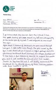 “I got to know Yap Chan Kor from the internet. I had this shooting pain around my heel area and especially at the centre part of my heel area and especially at the centre part of my heel. I was suspected to have a heel spur.